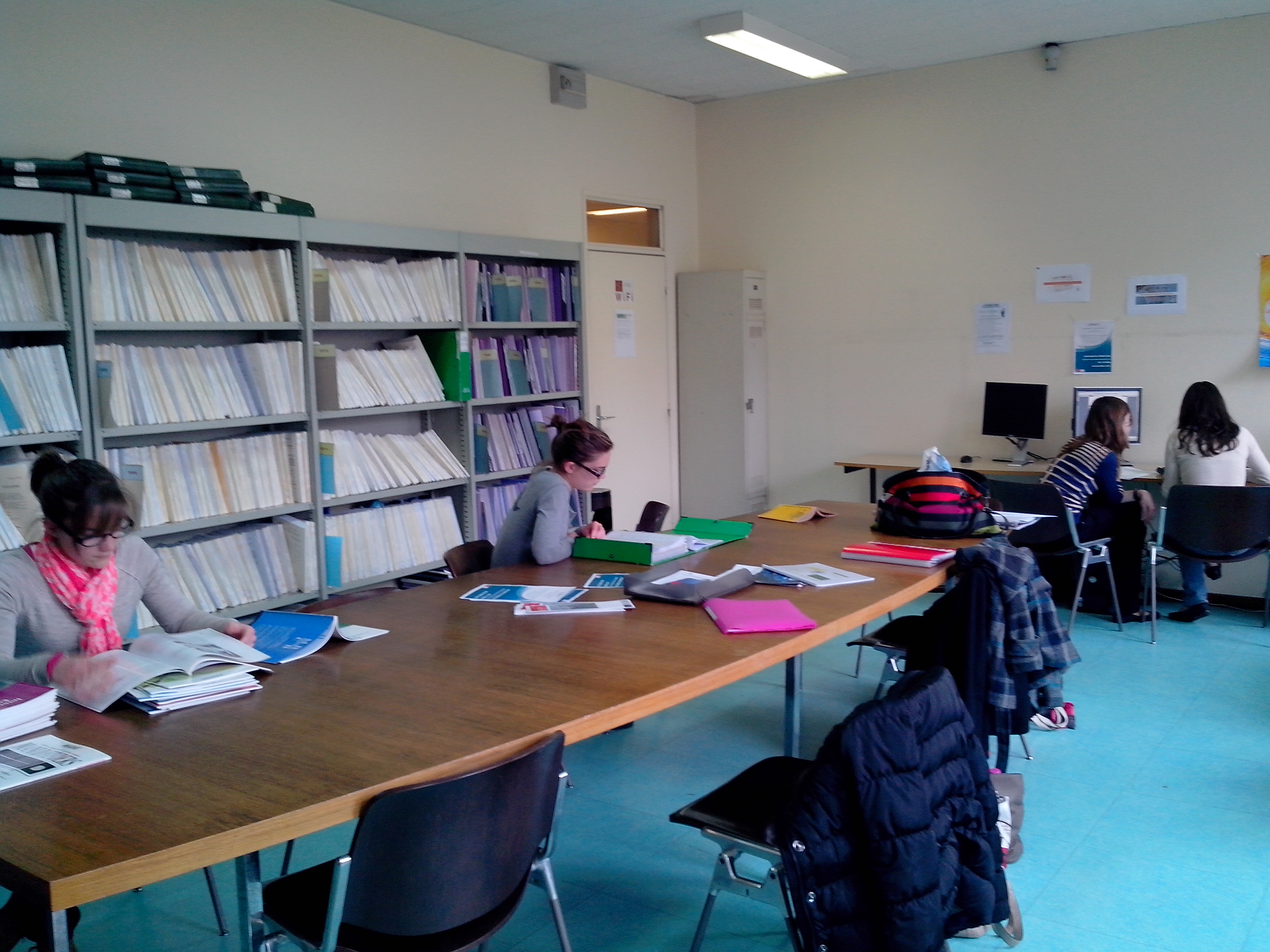 Une agréable salle de lecture et de travail d'une quinzaine de places est reservée aux étudiants ,enseignants , personnels et stagiaires. La mise à disposition d'un photocopieur,et d'un accés à l'internet sur deux postes informatiques facilitent la recherche documentaire.