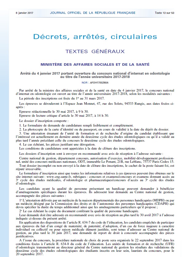 Informations sur le concours de l'Internat disponibles sur le site du Centre National de Gestion :